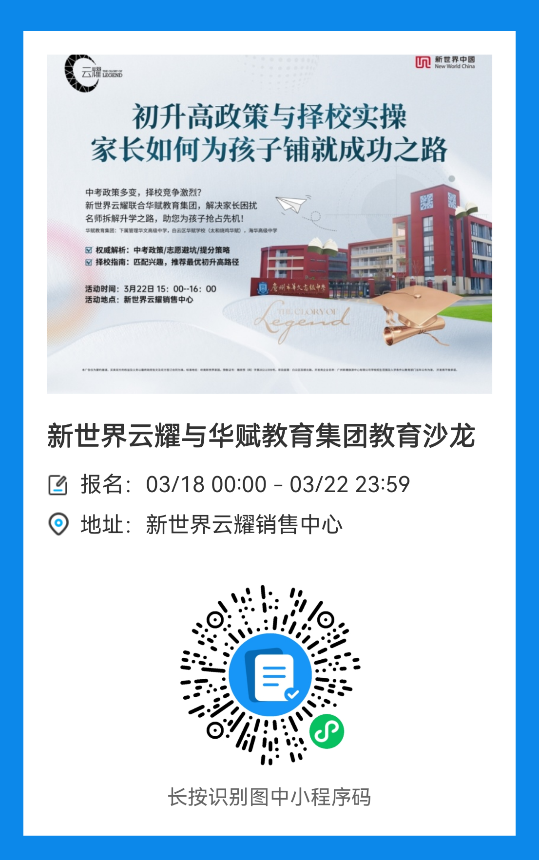 新世界云耀&华赋教育集团联动🎓 拆解升学之路,助力孩子中考📈 中考政策&提分功略&择校指南📚 一切答案都在 3 月 22 日星期六 15:00-16:00,云耀销售中心 #新世界云耀 #华赋教育集团