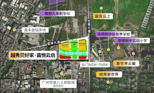 项目与白云大型社区岭南新世界只有一路之隔,后者是最早于2001年开发的超级大盘,涵盖刚需、改善组团,居住氛围浓厚,配套已有沉淀。