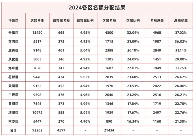 2024各区名额分配结果