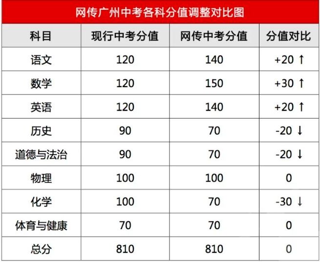 网传:广州中考重大调整,各科分值巨变